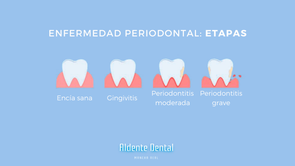 • Periodontitis. Es una enfermedad grave e irreversible. Se caracteriza por la pérdida estructural del aparato de inserción, provocando la caída de los dientes.